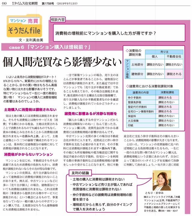 タイムス住宅新聞 2019年9月13日号に掲載されました